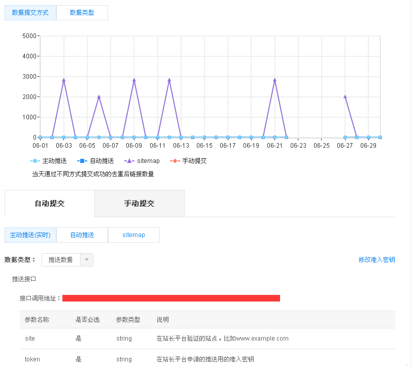 • 使用前的准备工作:在开始之前,请确保您已将您的网站添加到百度站长平台,并获取到接口调用地址。