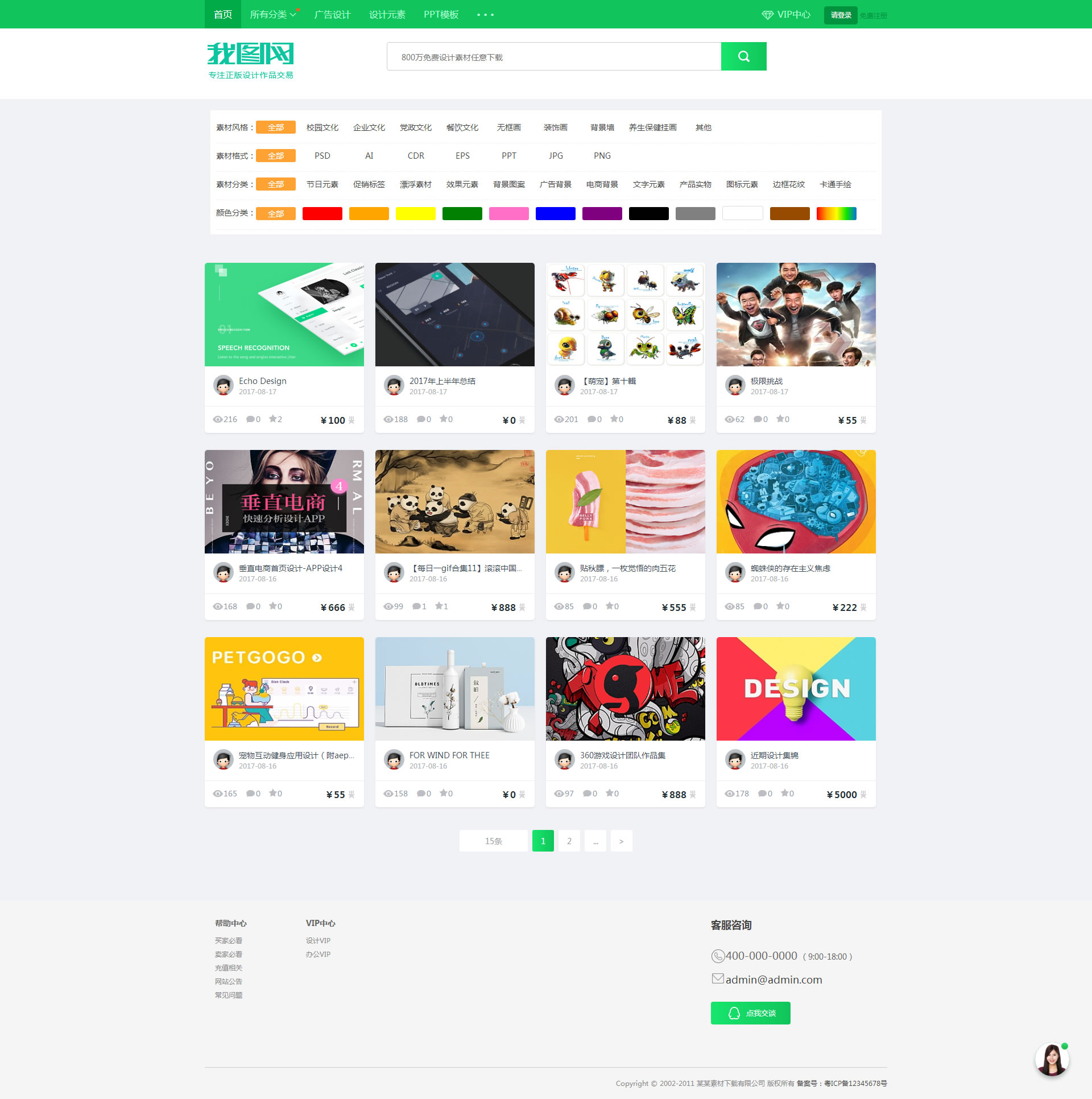 绿色仿《我图网》素材资源下载类织梦网站模板