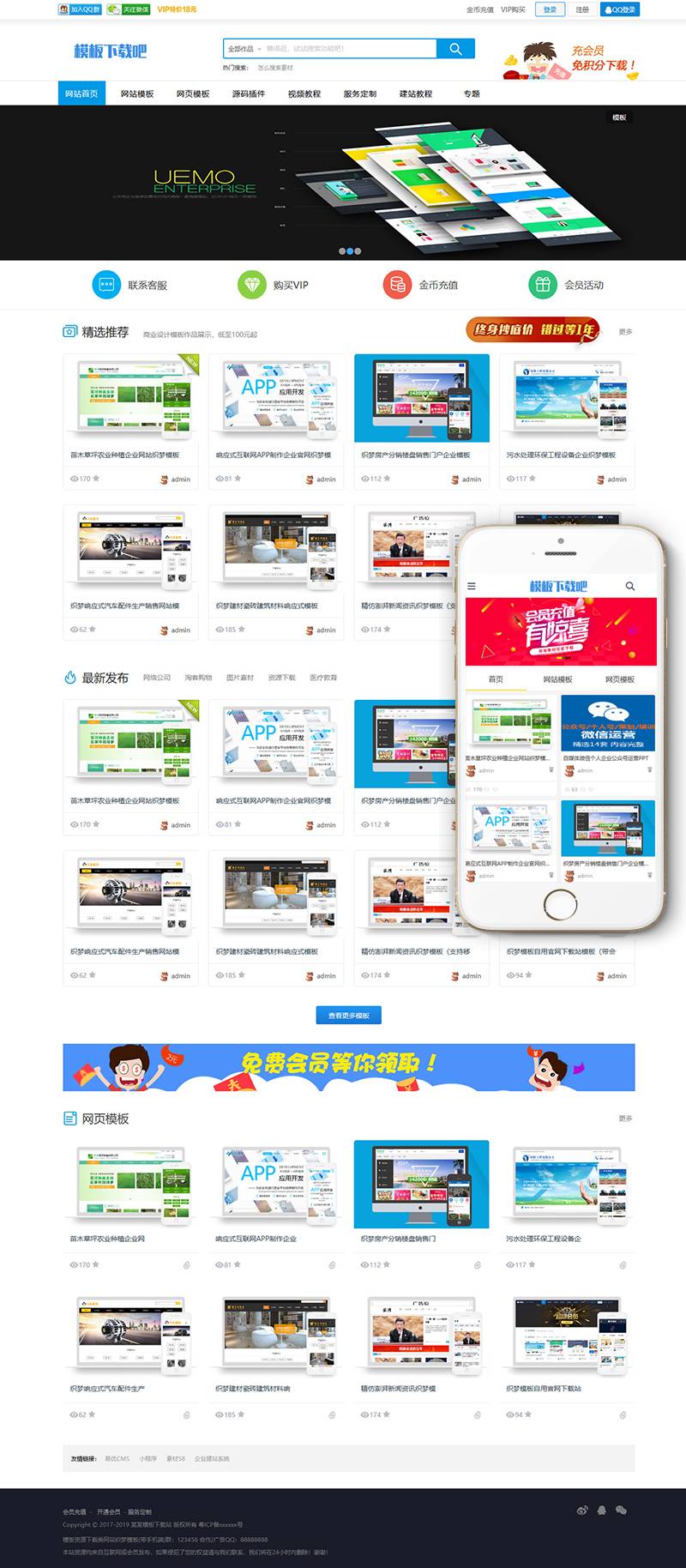 (PC+WAP)模板资源下载类网站模板(带会员中心)。该模板适用于模板资源下载网站、ppt资源下载网站、网页插件js特效网站等公司,其他行业也可以做使用,只需要把文字图片换成其他行业的即可。