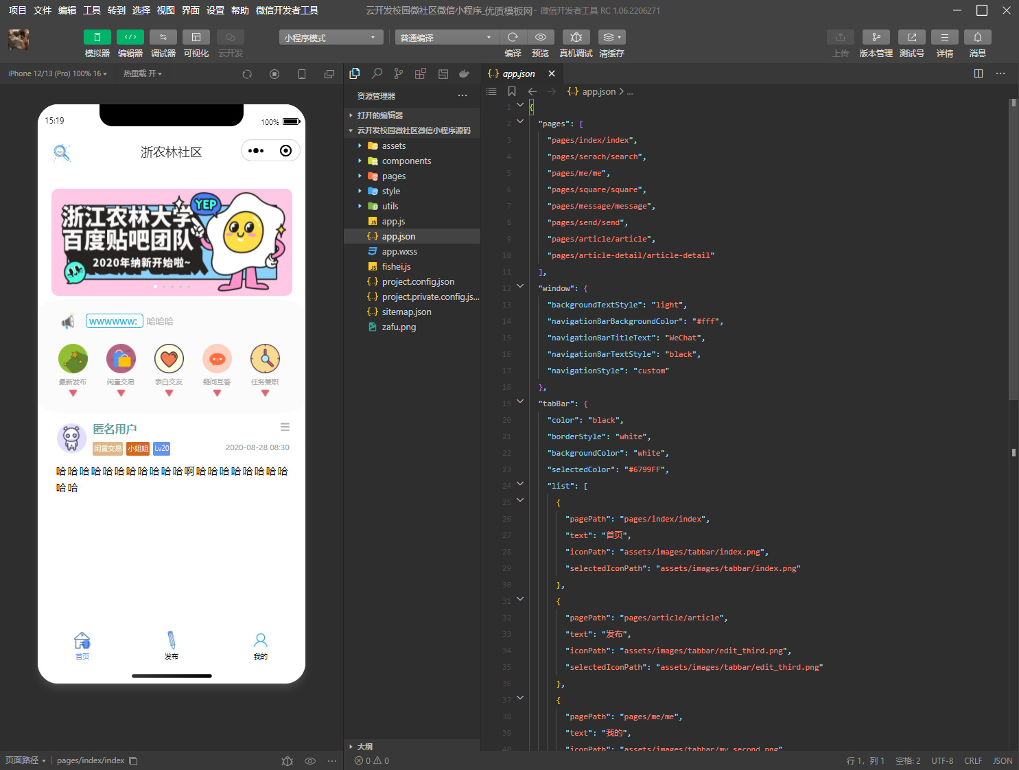 这是一款云开发校园微社区微信小程序的开源源码,包含了二手交易、交友、疑问互答、任务兼职、失物招领、趣事分享等实用板块和功能。在发布栏目中,用户可以上传图片或视频,选择是否匿名发布和发布位置,保护自己的隐私。该小程序还有首页轮播图广告、轮播公共聊天区最新聊天内容、展示帖子详细信息、个人信息区等功能。此外,该源码还支持更多功能的扩展,比如商城、修改个人信息、在线刷题等。虽然该小程序的功能尚未全部完善,但感兴趣的朋友可以自行完善并使用。板块分类包括了闲置交易、表白交友、疑问互答、失物招领等等,让你的校园生活更加便捷和有趣。 内容加载中..